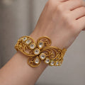 Each motif reflects fine craftsmanship and traditional artistry, giving the bracelet depth, texture, and visual appeal. The antique finish enhances the detailing, making this Jadau bracelet a perfect statement accessory for weddings, festive occasions, bridal functions, and cultural celebrations. Whether paired with sarees, lehengas, anarkalis, or ethnic suits, it elevates your look with timeless elegance.