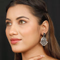Completing the design are delicate dangling accents, crafted to sway gently as you move, infusing your look with fluidity and charm. The oxidised antique finish gives the earrings a vintage, handcrafted aesthetic while ensuring durability, low maintenance, and long-lasting brilliance.