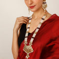 Step into a world of regal splendor with the Pearl Royale Jadau Set—an exquisite showcase of traditional Indian craftsmanship, timeless design, and luxurious elegance. Rooted in centuries-old artistry, this heirloom-worthy creation brings together the luminous beauty of pearls, the intricate finesse of Jadau work, and the opulent glow of 22-karat gold plating.