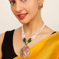 Ideal for weddings, festive celebrations, and royal occasions, the Opulent Jadau Pendant blends classic tradition with contemporary luxury. Its stunning design and vibrant colors make it a must-have for those seeking luxury Indian pendant jewelry that exudes elegance and cultural richness.