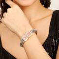 At the heart of this luxurious piece are radiant yellow sapphires, celebrated for their rich, golden hue that symbolizes wisdom, prosperity, and vitality. These captivating gems are carefully set alongside brilliant-cut diamonds, their fire and sparkle providing a stunning contrast that enhances the bracelet's overall brilliance. The incorporation of Polki—a centuries-old Indian jewelry technique known for its use of uncut diamonds—adds a touch of vintage grandeur, bridging the gap between heritage and high fashion.