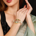 The 22-karat gold-plated base enhances the richness of the design, providing a warm, luminous backdrop that perfectly complements the crisp sparkle of the diamonds. The bracelet’s silhouette is both graceful and bold, making it the perfect statement piece for grand occasions such as weddings, festive gatherings, or formal evenings.