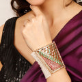 Plated in rich 22-karat gold, the wristpiece exudes a warm, opulent glow that enhances the brilliance of every stone. Intricate detailing weaves through the design, celebrating the finesse of age-old techniques and the mastery of skilled artisans. With every glance, it reveals layers of refined elegance and delicate precision.