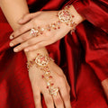 Flowing gracefully across the fingers and gently wrapping around the wrist, the Crimson Bloom Hathphool forms a captivating silhouette—one that enhances every traditional ensemble, be it bridal, festive, or ceremonial. With every movement, it speaks of majesty, elegance, and timeless allure.