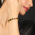 Each gemstone in the Spectrum Spark reflects a unique energy — from the fiery brilliance of ruby to the calming depth of sapphire, the rejuvenating green of emerald to the warmth of topaz. Together, they form a harmonious rainbow of color, representing joy, abundance, and individuality. Set in a high-polished, gold-tone finish, every stone is secured using heritage Jadau techniques — a skill passed down through generations of Indian artisans.